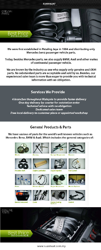 - Suan Huat is your original Mercedes, BMW and Audi parts site. We have supplied Mercedes, BMW and Audi products for 30 years.